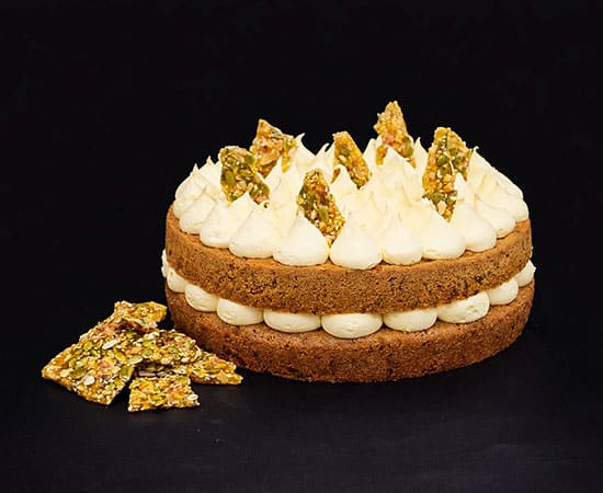 Nobody really knows the origin of carrot cake, however, some historians believe it got its start in medieval Europe where carrots were used as a substitute for sugar and sweeteners that most people couldn’t afford. Our carrot cake at CBD Cakes is moist and delicious. We spread cream cheese frosting through the centre and all over then top it with some walnuts for some extra crunch. Visit our delivery information page to learn more about delivering cakes online in Sydney.