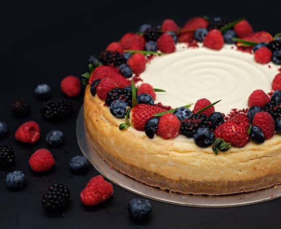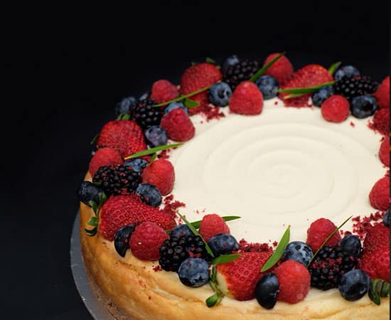 Rich, soft, creamy & traditional baked cheesecake, topped with mixed seasonal berries